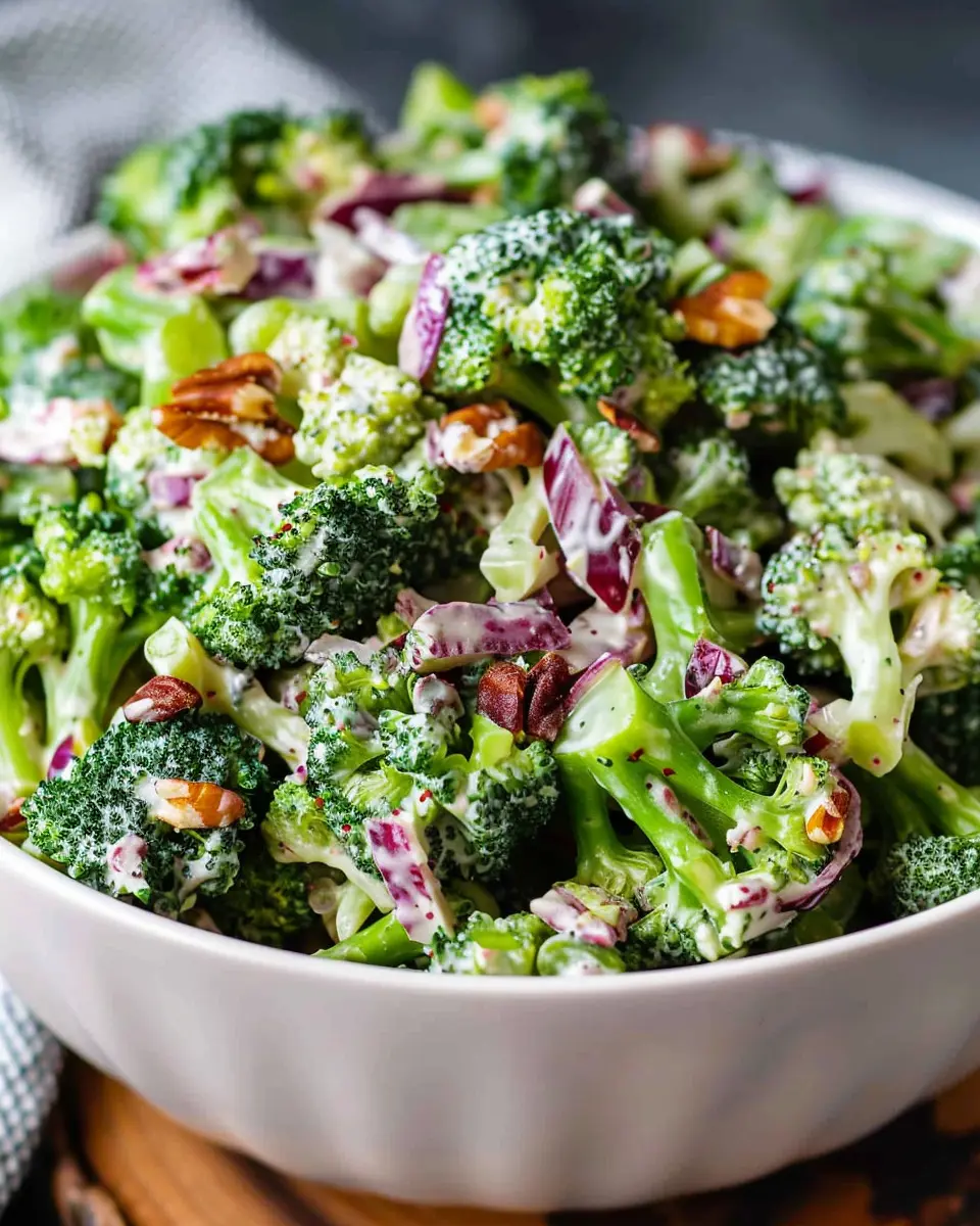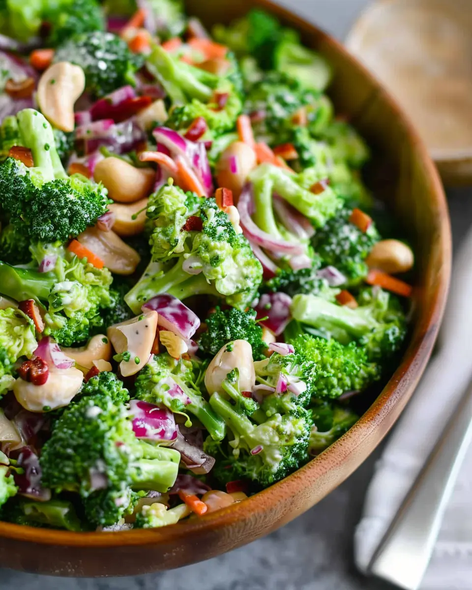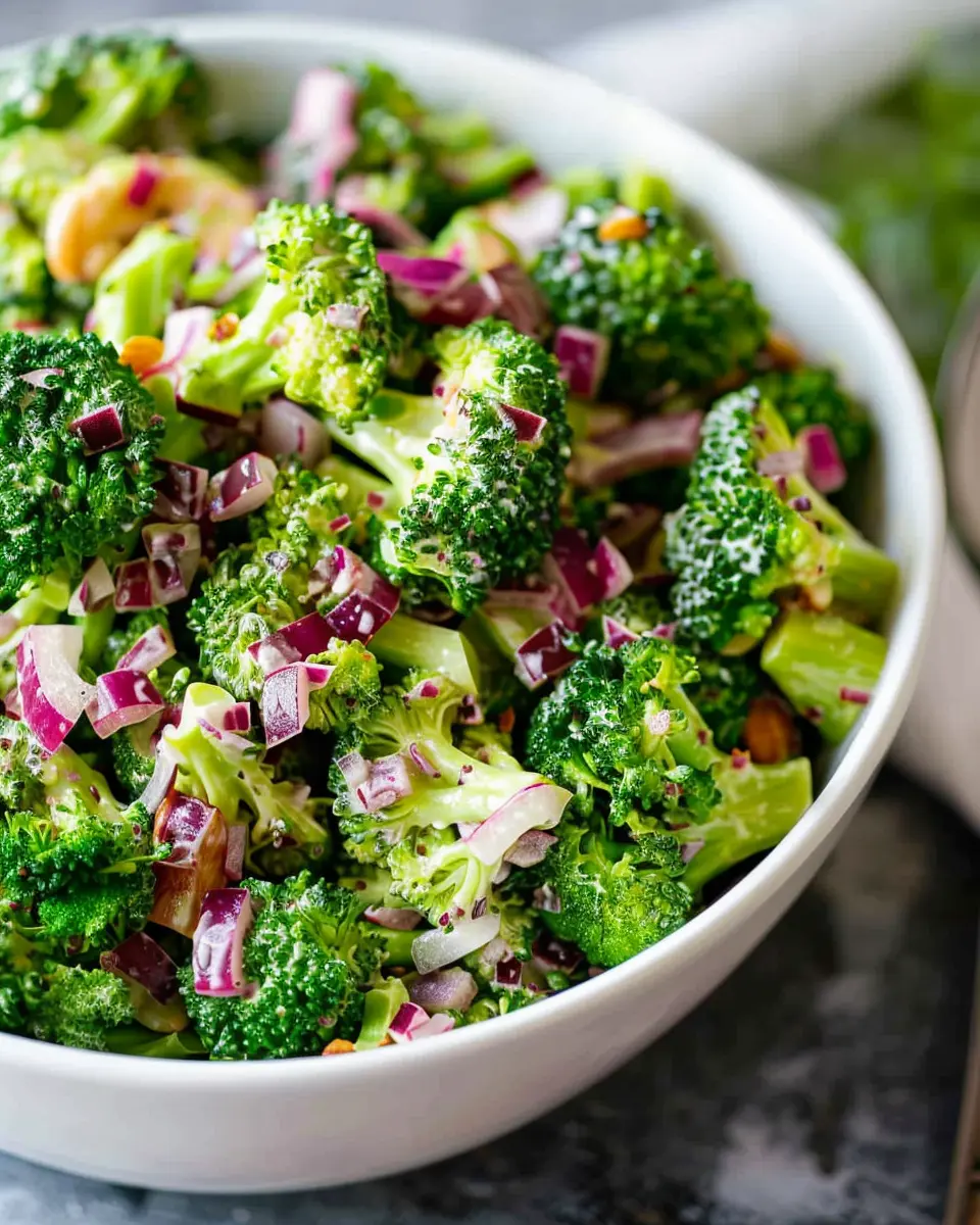 Making the best broccoli salad starts with just 15–20 minutes of prep. You’ll chop fresh broccoli, mix in some crunchy nuts, and whisk together a flavorful dressing. It’s a straightforward process that’s both fun and rewarding, especially when you see the vibrant colors come together.