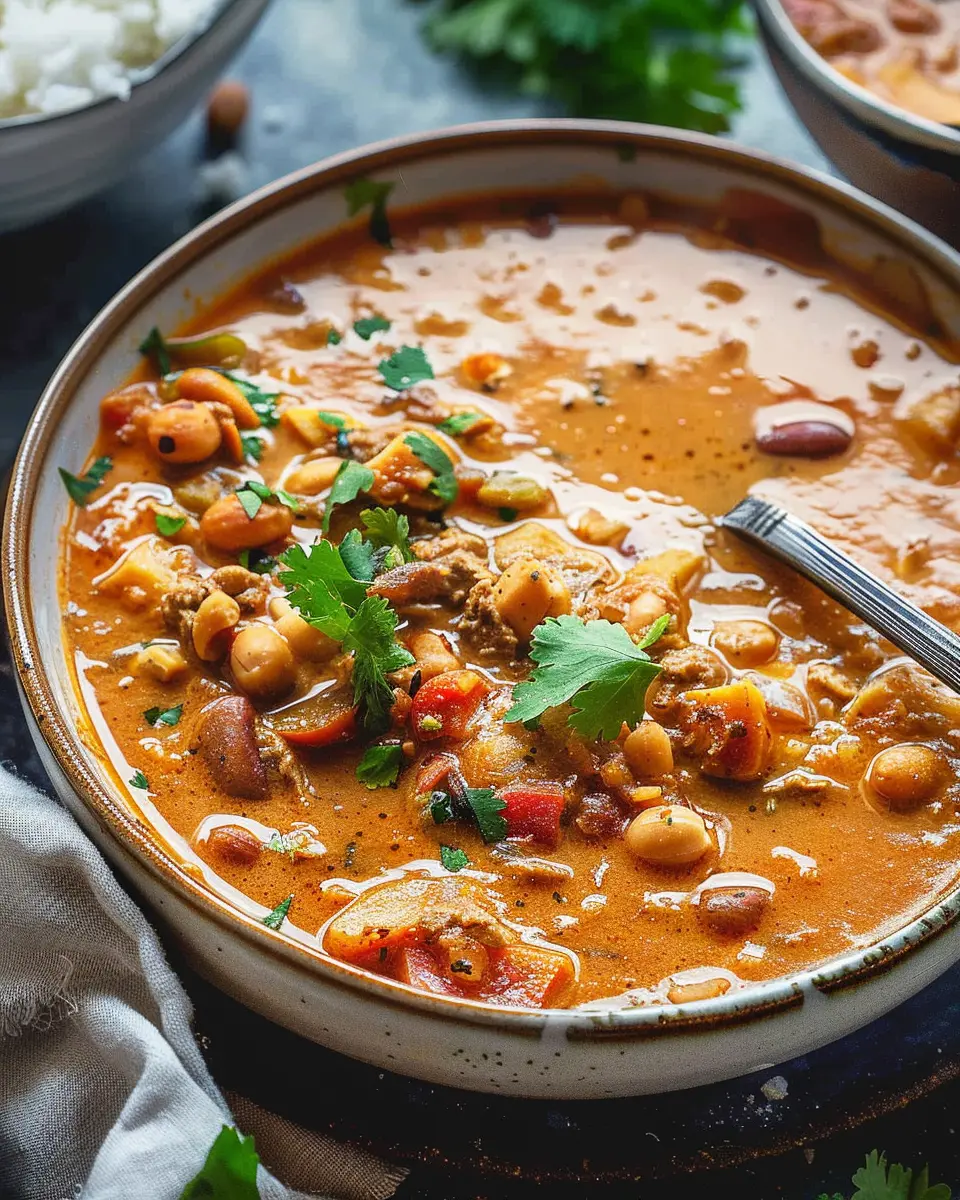 At its core, West African Peanut Stew is a delightful blend of groundnut paste (peanut butter), fresh vegetables, and spices simmered to perfection. The earthy nuttiness of the peanuts pairs beautifully with ingredients like tomatoes, onions, and chili peppers, resulting in a dish that’s both hearty and satisfying. Many people are drawn to this stew for not only its flavor but also its versatility. You can easily customize it to fit your dietary preferences—whether you enjoy chicken, turkey bacon, or prefer a vegetarian approach with beans.